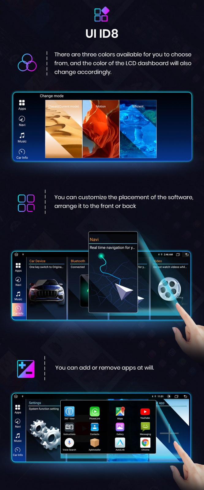 | APLICATII | Google Play Store , Facebook, Youtube, Waze, Google, Digi online, Jocuri, se poate instala orice aplicatie din Google Play Store. |