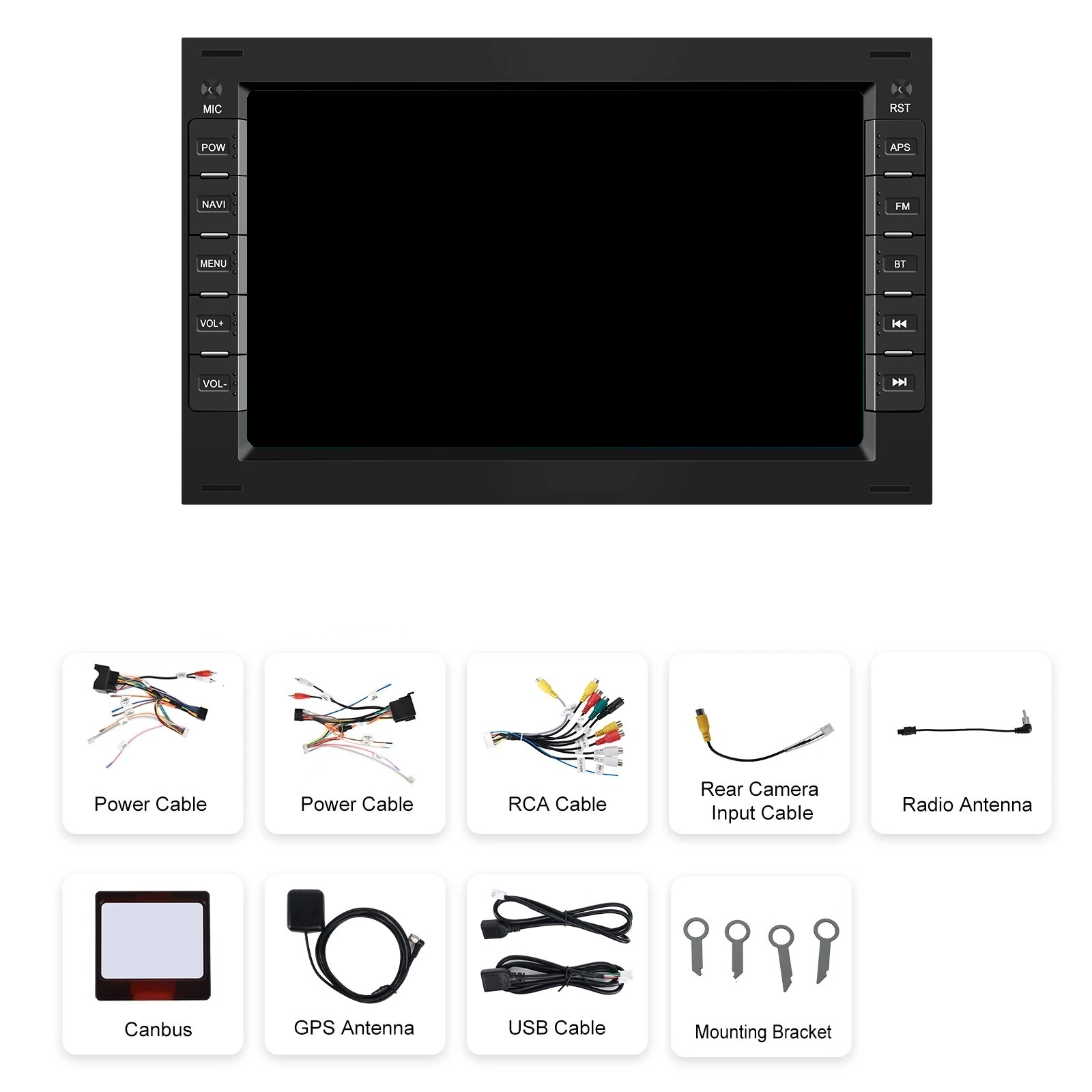 PACHET NAVIGATIE ALIMENTARE, CANBUS (UNDE ESTE CAZUL), 2x USB, CABLU CAMERA MARSARIER, RCA SUBWOOFER, ANTENA GPS, ADAPTOR ANTENA RADIO, FACTURA FISCALA, CERTIFICAT GARANTIE.