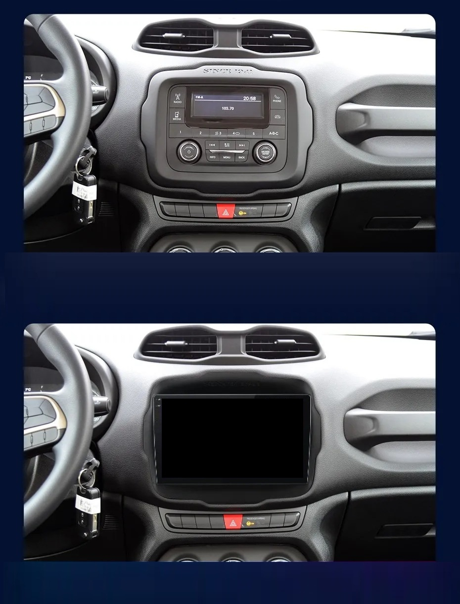 Navigatie auto dedicata pentru Jeep Renegade (2016-2020) cu ecran 9 inch, cu cea mai noua versiune de Android, si functii precum wifi,bluetooth,usb,rds,dsp si multe altele.Acestea vin dedicate pentru masina dvs. si nu necesita nici o modificare asupra masinii.