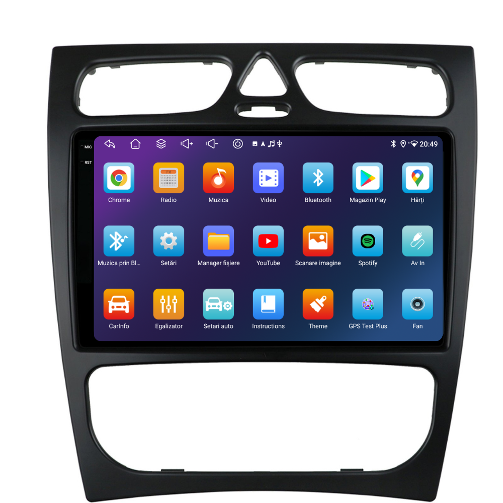 Navigatie auto dedicata pentru Mercedes, cu ecran QLED 9 inch, cu cea mai noua versiune de Android, si functii precum wifi,bluetooth,usb,rds,dsp si multe altele.Acestea vin dedicate pentru masina dvs. si nu necesita nici o modificare asupra masinii.