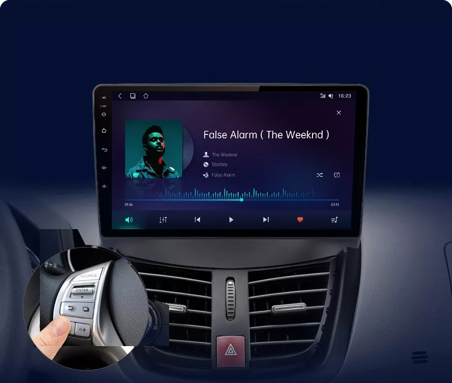 - Preluare comenzi volan - Preluarea comenzile se face prin intermediul canbus-ului (atunci cand exista comenzi volan), volumul, preluare apel telefonic, schimbarea pieselor direct de pe volan. Nu trebuie sa va mai faceti griji atunci cand sunteti la volan si cineva va suna, apelurile sunt preluate direct de pe navigatie sau butonul de pe volan.