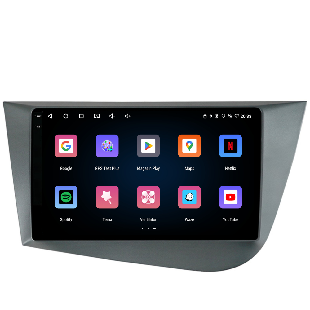 Navigatie auto dedicata pentru seat leon 2005-2012, cu ecran 9 inch, cu cea mai noua versiune de Android, si functii precum wifi,bluetooth,usb,rds,dsp si multe altele.Acestea vin dedicate pentru masina dvs. si nu necesita nici o modificare asupra masinii.