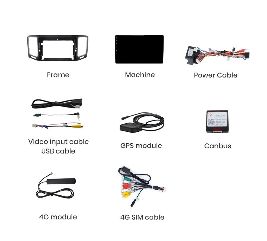Continut pachet Cablaj alimentare, canbus ( pe anumite modele de masini nu necesita, asadar nu va fi in pachet), 2x cablu USB, adaptor antena radio, antena GPS, rca camera marsarier, rama adaptoare (daca nu este varianta de navigatie care se monteaza pe rama originala).